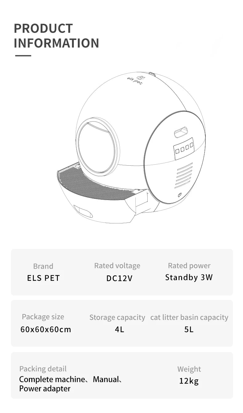 Deze innovatieve, zelfreinigende kattenbak is de ultieme oplossing voor een hygiënisch huis zonder de dagelijkse rompslomp. Het geavanceerde, bolvormige ontwerp past naadloos in elk modern interieur. Dit apparaat combineert gemak met een stijlvolle esthetiek en verbetert zo de leefomgeving voor zowel jou als je kat.